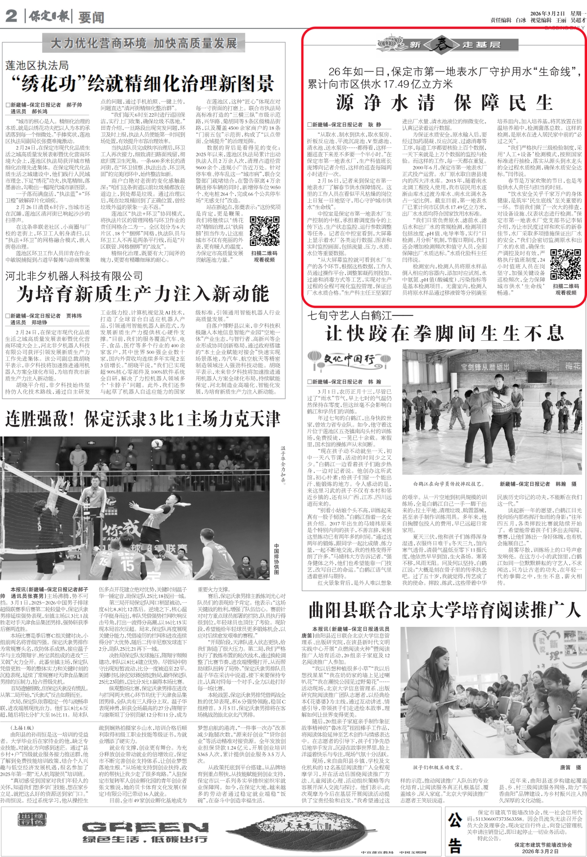 《保定日報》:源凈水清 保障民生